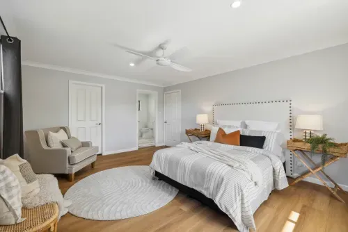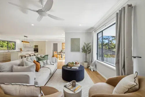 The Pines Hometown Australia - four brand new display homes each home boasts its own unique style while embodying the coastal, easy-living aesthetic. Our goal was to create a serene, modern retreat by incorporating natural materials, light tones and ocean-inspired decor. The Result? Inviting spaces that feel both luxurious and laid-back, perfect for showcasing the relaxed coastal lifestyle on the Coff Coast.